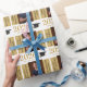 Este papel de embrulho de presente de graduação apresenta uma foto vertical e é acentuado com o ouro. O "Formando 2025" aparece na fonte moderna e o texto personalizado permite personalizar com o nome do formando.