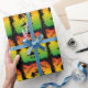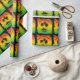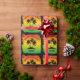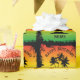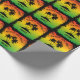 Papel de embrulho de aniversário jamaicano personalizável com cores de bandeira rastafariana num pôr de sol tropical atrás de palmeiras de silhueta preta