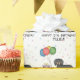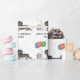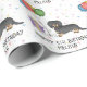 Um design do tema de aniversário bonito, com a ilustração original de Destei de um adorável cão da raça Dachshund, de cabelos brancos pretos e de casaco castanho-bronzeado. Ao lado do cão há balões coloridos de aniversário amarrados num osso de cão e uma caixa de cor roxa e amarela. O fundo tem um padrão lúgubre de confete pastel colorido sobre um fundo branco. Há também uma área de texto personalizável.