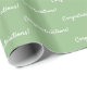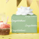 Folhas de papel elegantes e clássicas. Um fundo verde sábio, texto branco: Parabéns!