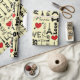 Design de texto de Paris para Dia de os namorados com formas vermelhas de coração, Torre Eiffel e decoração de lâmpadas de rua em fundo amarelo