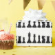 Este design telhado características do papel de envolvimento de partes de xadrez pretas. A cor do fundo pode ser mudada, se desejada.
