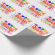 A Roll of White, Wrapping Paper,29" x6 Feet, =Optional, Drawing/Design of the Word = Party, in the color Red and White, with some Colorful Balloons, Confetti, and Gift Packages, = (Drawing/Design by P. J.M.)
