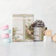 A imagem do vintage de um pássaro com seu ninho, em um ramo de florescência, decora este papel de papel de embrulho. Uma maneira bonito de apresentar esse presente especial para o dia das mães, a casa nova, os chás de fraldas e o mais!
