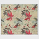 Papel De Presente Pássaro do feriado do Natal e poinsétia vermelha