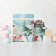 Papel De Presente Pássaro finch, verde natal, morango vermelho