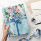Esta design apresenta o efeito do ouro de Natal espalha e confete com pedaços de bagas vermelhas e finch bird sobre um fundo azul-céu. Perfeito para decorações sazonais e de férias (Dia de as mães, Aniversário, Dia de os pais)