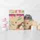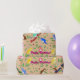 Bons pássaros Feliz Aniversário embrulhando papel para crianças. Diferentes aves coloridas com folhas e fundo de cor creme com Parabéns.