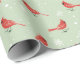 Papel De Presente Pássaros Cardinais Vermelhos e Flocos Brancos de N