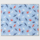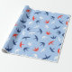 Papel De Presente Pássaros Cérebros Padrão de Voo Azul Vermelho Bran