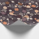 Aproveite a alegria do Natal! Este papel de embrulho de Natal tem pássaros engraçados com chapéus, decorações, pinos cones, flores e folhas em cores marrom e laranja em fundo castanho-escuro.