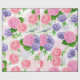Padrão de aquarela com várias flores e pássaro azul pintado com aquarelas.