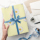 Águas brancas em um fundo pastel são uma maneira doce de embrulhar sua coisa especial. Flores são para garotas de todas as idades.