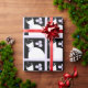 Bonito papel embrulhado em tom de púrpura apresentando um vestido estilizado de casamento e flores em fundo preto. Um design personalizável para você personalizar com seu próprio texto, imagens e ideias.
