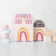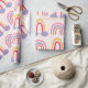 Um padrão encantador mostrando filas de arco-íris coloridos em tons pastéis macios de rosa, amarelo, roxo e vermelho, acentuados com nuvens de lavanda lisas. A delicada design exude um senso de serenidade e alegria, perfeita para vibrações capricosas e alegres.