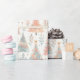 Papel De Presente Pastel Rosa e Árvores de Natal Verdes
