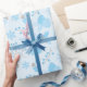 O "Pastel Winter Snowflake Pinecone Mistletoe Gift Wrapping Paper" combina flocos de neve intrincados e conchas com ramos de bagas e pinecones numa paleta azul suave, perfeita para uma elegante aparência de feriado.