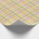 Este plástico de presente de xadrez pastel traz um olhar fresco e eterno para qualquer ocasião de primavera. Ele apresenta um padrão pintado manualmente em tons suaves de rosa, amarelo, verde e laranja. Este presente embrulho se sente bem em casa para Páscoa, Dia de as mães ou qualquer aniversário de primavera. Desenhado por Marketa Stengl.