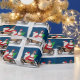 Um Papai Noel andando de bicicleta entregando a árvore de Natal e o cão Shepherd australiano como presente é uma ideia perfeita de presente de Natal para alguém que ama essa raça de cachorro.