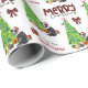 Papel De Presente Pastor australiano, pássaro e árvore de Natal