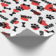 Belas charges estimula pata de cachorro e ossos. Rolos de papel de embrulho de presente personalizados. Versão do padrão cardíaco vermelho. Dar uma ideia para amantes de cães e seus cachorros.