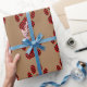 Pata de cão com padrão cardíaco. Rolos de papel de embrulho personalizados. Desenho original em vermelho, preto e marrom.