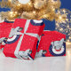 Papel De Presente Patinete no envoltório vermelho com neve de queda