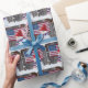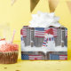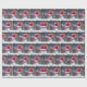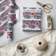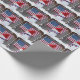 A happy snowman, wearing a vibrant red beanie and a stylish striped scarf in patriotic shades of red, white, and blue, proudly positioned in front of a rustic wooden barn that showcases an American flag