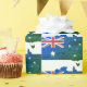 Papel de embrulho AUSTRALIANO Patriótico que mostra uma design combinada do contorno do mapa e da bandeira da AUSTRÁLIA num padrão ladeado com efeito verde azul. Ideal para comemorações do DIA AUSTRÁLIA, Aniversário e Natal. e para qualquer ocasião ao longo do ano.
