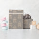 Diseño sencillo de tres triangulos siguiendo una secuencia, se utilizaron colores neutros para permitir el uso de este papel de regalo en cualquier ocasión. Perfecto para aquellos que más quieres.