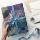 "Tecido de Decoupage Dourado de Folha de Peacock Azul Roxo Roxo Roxo Elegante para Quebra ou Desligamento de Presente." Correspondência perfeita entre os favoritos para projetar portas de gabinete que estejam voltadas ou afastadas umas das outras. Uma vintage de estilo fantasioso e divertido e uma design de arte moderna com pavões elegantes em tons negros sobre um fundo lamacento e cor de pavão, modelado de fundo com penas pavão douradas, flores, pano de fundo da estrela cintilante. Elegante na moda para uma divertida e feminista decoração doméstica ou embrulho de presente design. Arte gráfica desenhada por uma artista e designer internacionalmente licenciada, Audrey Jeanne Roberts. Direitos autorais.