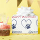Pata azul de estimação com coração e texto de aniversário feliz em fundo branco. A cor de fundo pode ser alterada.