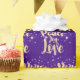Joy da Paz Ama o texto dourado com estrelas brancas sobre fundo roxo. A cor de fundo pode ser alterada.