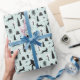 Papel De Presente Pé-Grande e Jackalope no Padrão Florestal Azul