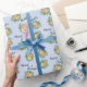 Papel De Presente Peach Rosas Azuis De Casamento Floral