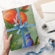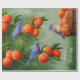Pássaros azuis ocidentais em um pomar de pessegueiro.