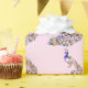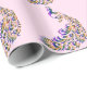 Papel bonito, embrulho de presente com fundo lilás pálido, apresenta pavões coloridos, em tons de roxo, ouro, verde e azul. Perfeito por dar presentes para aniversários, chás, Dias de as mães e muito mais!