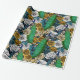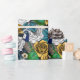 Padrão desenhado à mão com pavões e vários rosas sobre fundo escuro