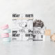 Este trabalho de arte de amendoim apresenta o Snoopy sentado sobre o fundo das tiras cômicas de Charles M. Schulz, preto e branco.
