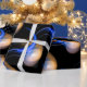 PAPEL DE PRESENTE PEDAÇOS BRANCOS DE ALIENÍGENA DE PINCO AZUL