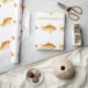 Este papel de embalagem apresenta um padrão comum de peixe dourado com laranja, tangerina e amarelo. Peixes dourados parecem carpas selvagens; eles têm uma boca pequena, corpo médio, e barbatana de cauda forjada. Essa dura variedade de peixes dourados é encontrada em lagoas de jardim onde crescem até 12 centímetros a mais. O peixe-dourado comum vem em uma variedade de cores, incluindo combinações de vermelho, laranja, amarelo, bronze, preto, branco e cor. Este papel padrão de peixe dourado é para entusiastas de peixes de aquário e qualquer um que desfrute de arte colorida de peixes.