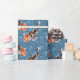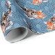 Papel De Presente Peixe Koi Laranja nas Ondas Azuis Patterado
