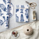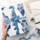 Papel De Presente Peixe-Padrão Floral Azul Marinho Náutico