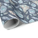 Papel De Presente Penas Chic Boho Flores: Azul Escuro-Aquarela P