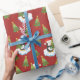 An Adorable Red Wrapping Paper For The Holidays Designed With Penguins And Christmas Trees