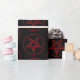Pentagrama vermelho, invertido, texturizado em círculo, sobre fundo preto. Símbolo oculto. 666