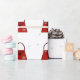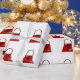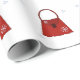Um design divertido com bolsas vermelhas bonitinhas. Flocos de neve caindo.