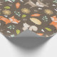 Animais de floresta em grão que embrulham papel com raposa, veado, guaxinim e porco-espinho e outros elementos naturais.