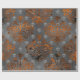 designs metálico-laranja-damascos são cercados por crânios brancos em um fazer de fundo de cinza este é um elegante, mas assustador design de Halloween. Consulte a visualização da imagem "costura" para verificar se ela é aceitável.
