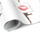 As pernas nuas mostram debaixo de uma poster de um beijo no batom